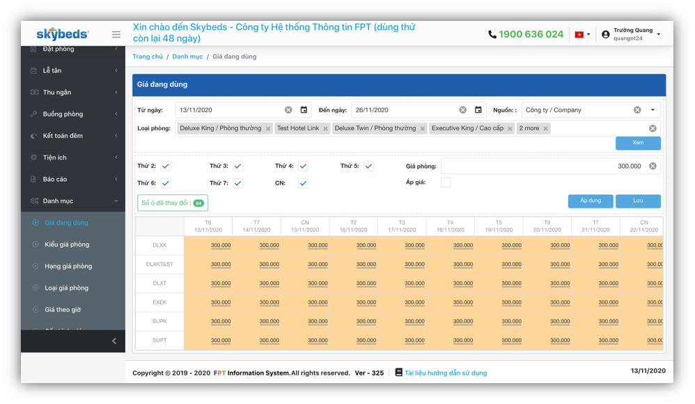 Kiểm tra lại cấu hình giá cho từng loại phòng. Phải cấu hình hệ thống để vận hành.