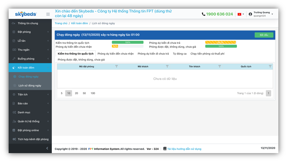• Thực hiện quá trình tổng kết và đưa ra doanh thu trong một ngày của khách sạn.