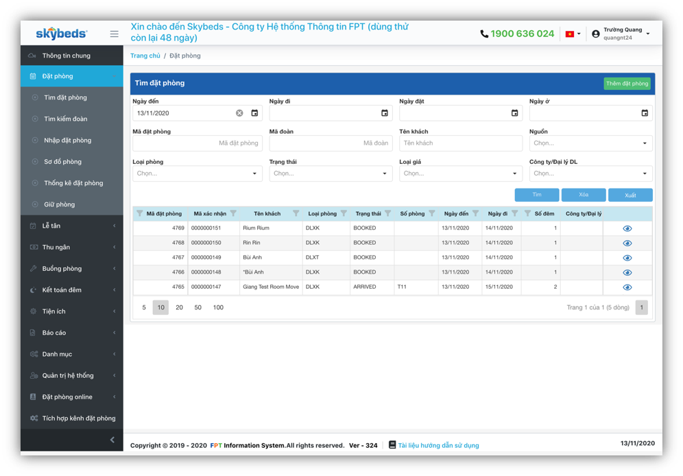 Tìm không thấy đặt phòng ở màn hình tìm đặt phòng