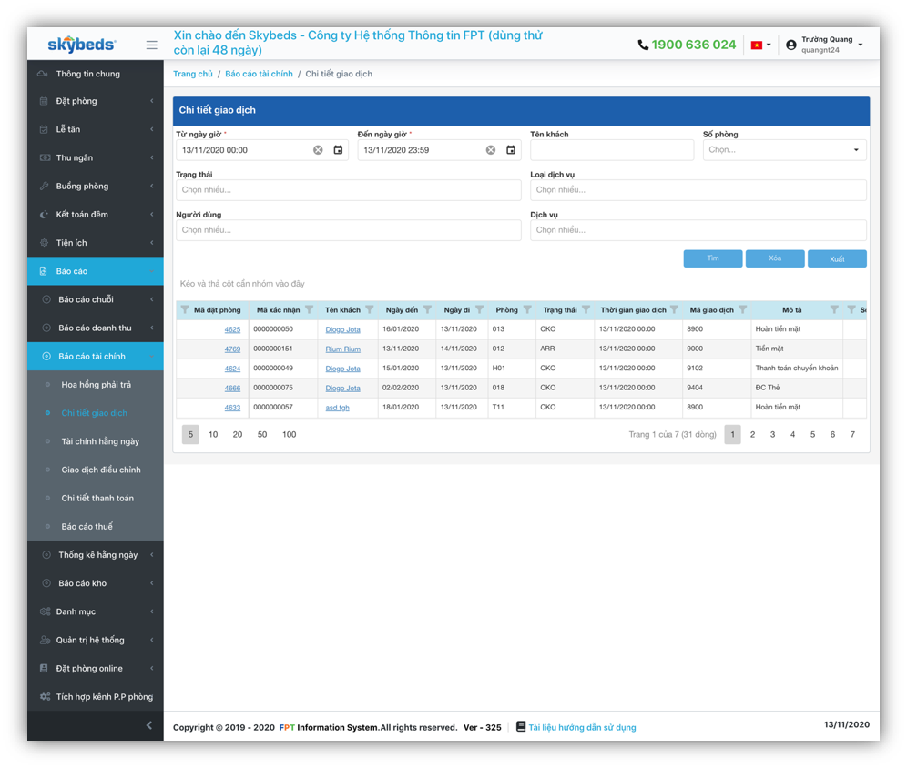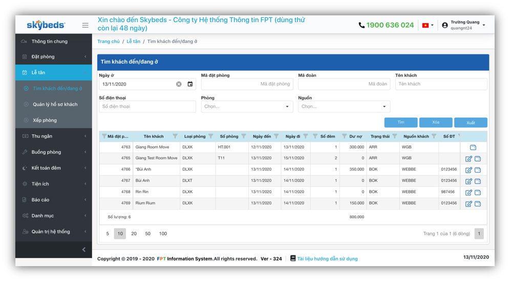 • Thanh toán tiền phòng cho khách hàng tiện lợi hơn thông qua số phòng và thông tin khách hàng cung cấp.
