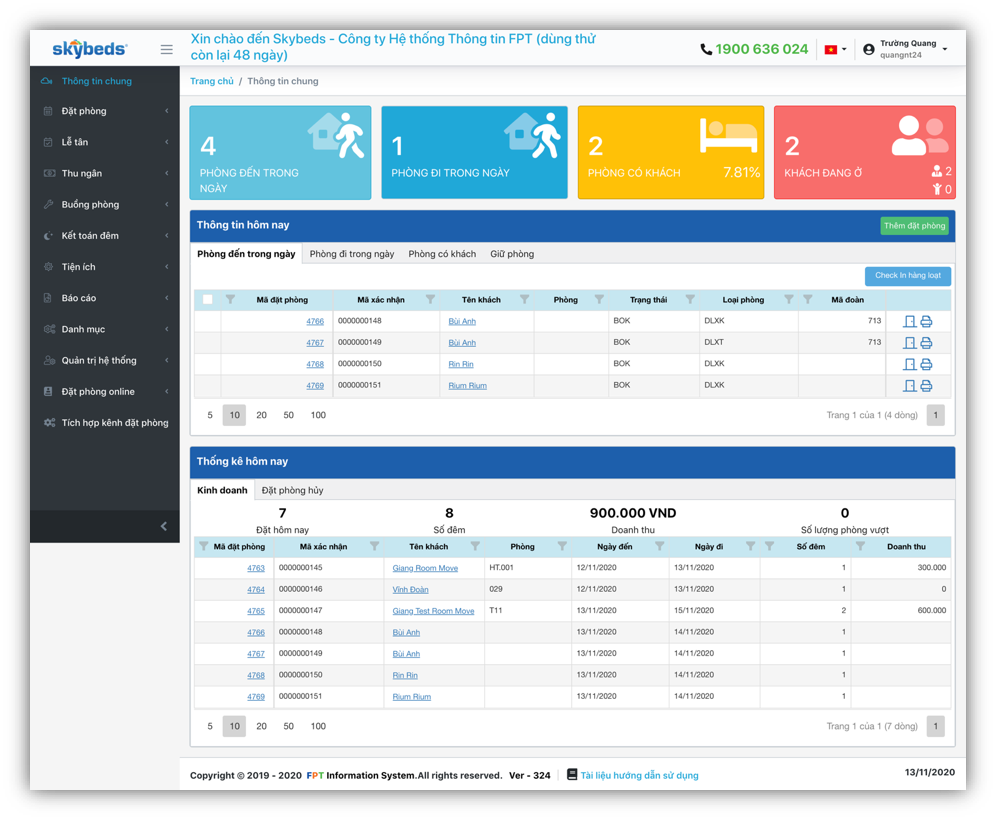 • Giảm thời gian thao tác nhận trả phòng cho khách.