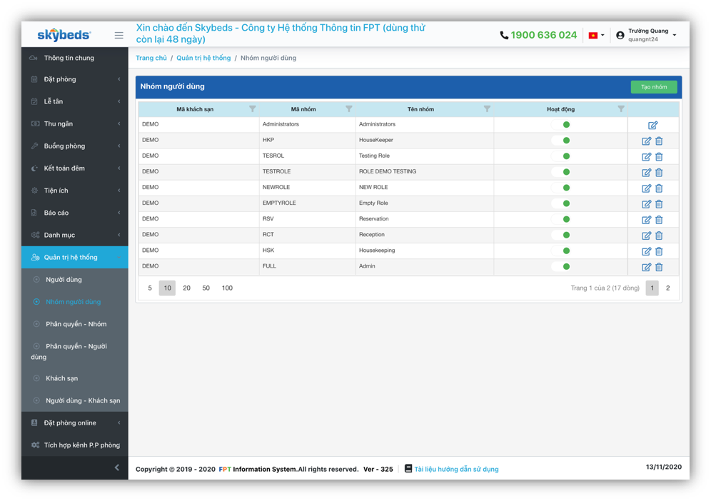 2. Chắc chắn trạng thái của phòng đã được hoạt động.